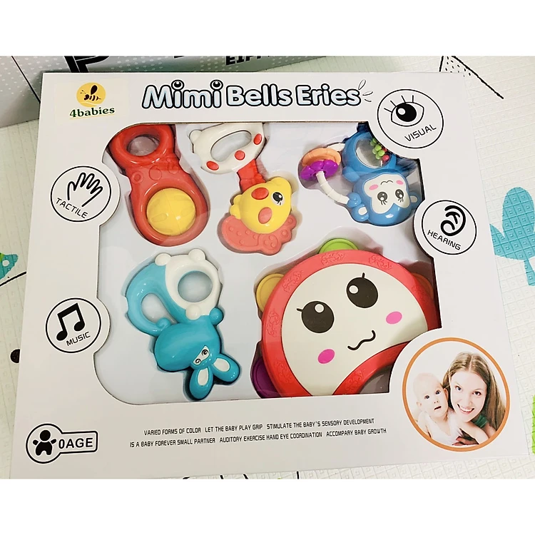 - Bộ đồ chơi có màu sắc và âm thanh vui tai giúp kích thích phát triển thị giác và xúc giác.