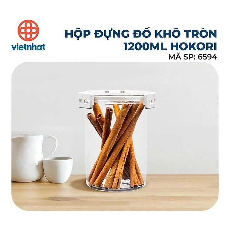 Hộp đồ khô tròn 1200ml Hokori 6594, Hộp nhựa đựng thực phẩm khô, hộp đựng sữa, hộp nhựa nắp đậy kín