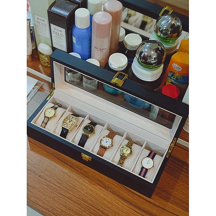 Hộp Đồng Hồ 6 Ngăn SAIKE SAIKE S602 Vỏ Gỗ Sơn Phủ Màu Đen