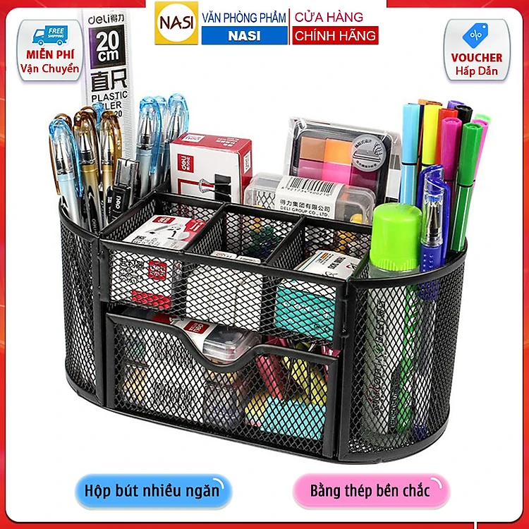 Hộp đựng bút để bàn Văn Phòng Phẩm NASI NS12 nhiều ngăn bằng thép sơn tĩnh điện cứng chắc khay đựng kệ để bút học sinh