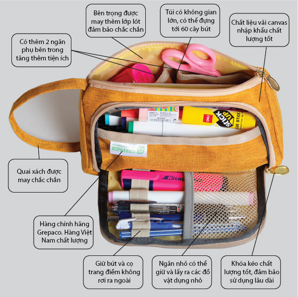 Chi tiết về hộp đựng bút viết, túi đựng mỹ phẩm