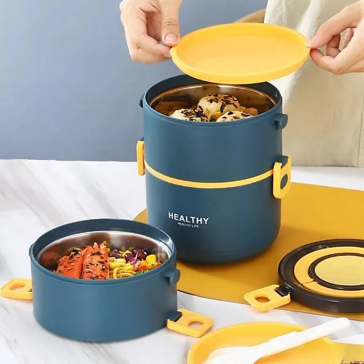 Hộp Đựng Cơm, Hộp Cơm Giữ Nhiệt Inox 304, Đựng Đồ Ăn Văn Phòng, Cà Mên 3 Tầng Chống Tràn, Kèm Thìa 2L - Hàng Chính Hãng MINIIN - Loại 1