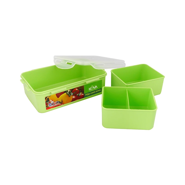 Hộp Đựng Cơm Kova TCL-G - 1 Lít - Xanh Lá được làm từ nhựa P.P an toàn cho sức khỏe, với 3 ngăn cách biệt sẽ giúp bạn dễ dàng để cơm, canh và thức ăn mặn, sử dụng được trong lò vi sóng và dễ dàng chùi rửa cũng như tính tiện dụng cao sẽ giúp bạn có một bữa trưa ngon miệng, đủ chất và vệ sinh. Hộp đựng Kova rất tiện lợi và phù hợp với những ai làm việc văn phòng cần có một hộp đựng cơm trưa khi đi làm.
