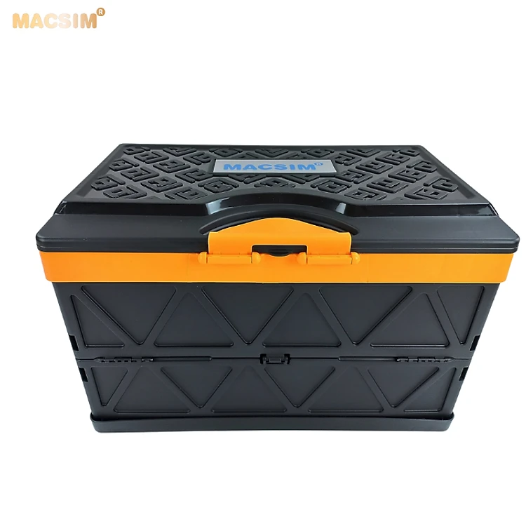 Hộp đựng đồ 48l màu đen pha cam xếp gọn kích thước 50cm x 32cm x 31cm - hộp đựng đồ trong cốp ô tô nhãn hiệu Macsim chất liệu PP cao cấp
