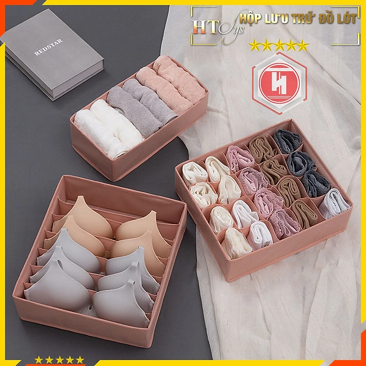 Hộp đựng đồ lót bằng vải HT SYS- Hộp lưu trữ đồ lót gấp gọn 3 trong 1
