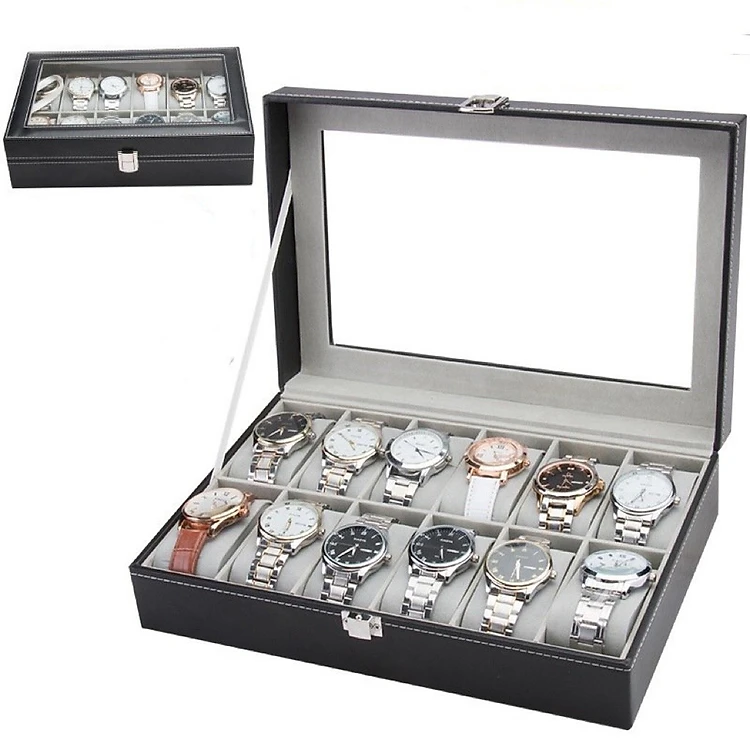 Hộp Đựng Đồng Hồ 12 Cái SAIKE S109 Vỏ Da Màu Đen Lót Xám