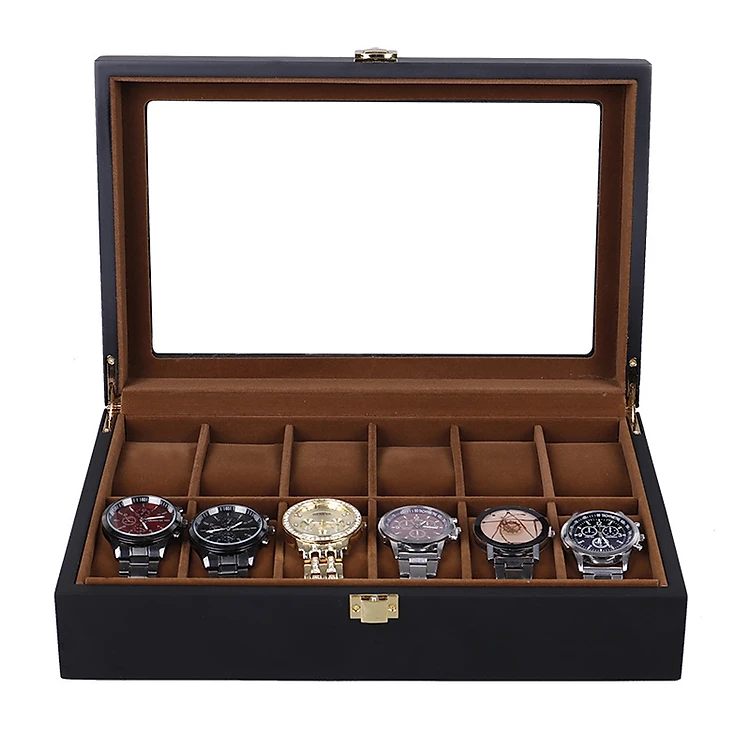 Hộp Đựng Đồng Hồ 12 Ngăn SAIKE SAIKE S120 Vỏ Gỗ Màu Đen Lót Nhung Màu Nâu