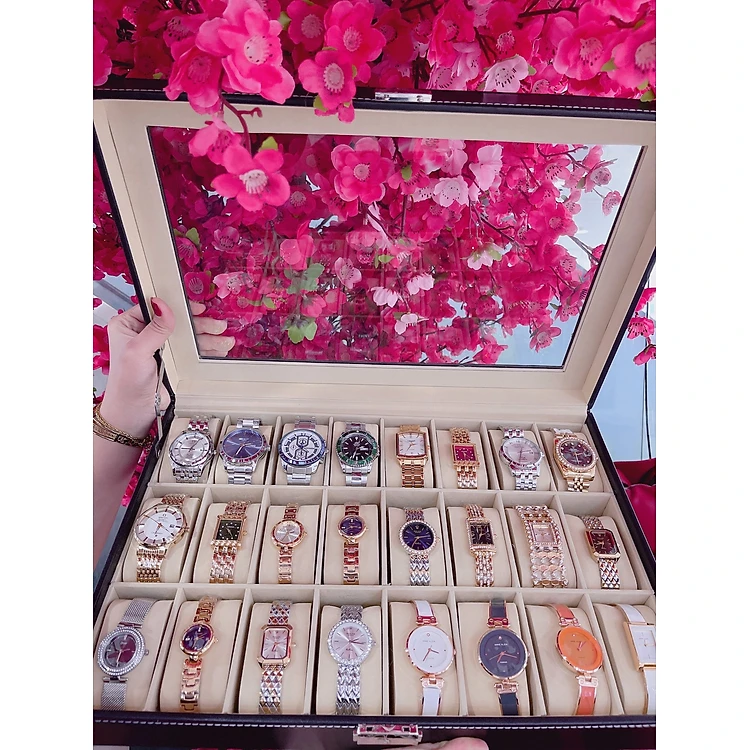 Hộp đựng đồng hồ 24 cái SAIKE SAIKE S247 bọc da màu đen