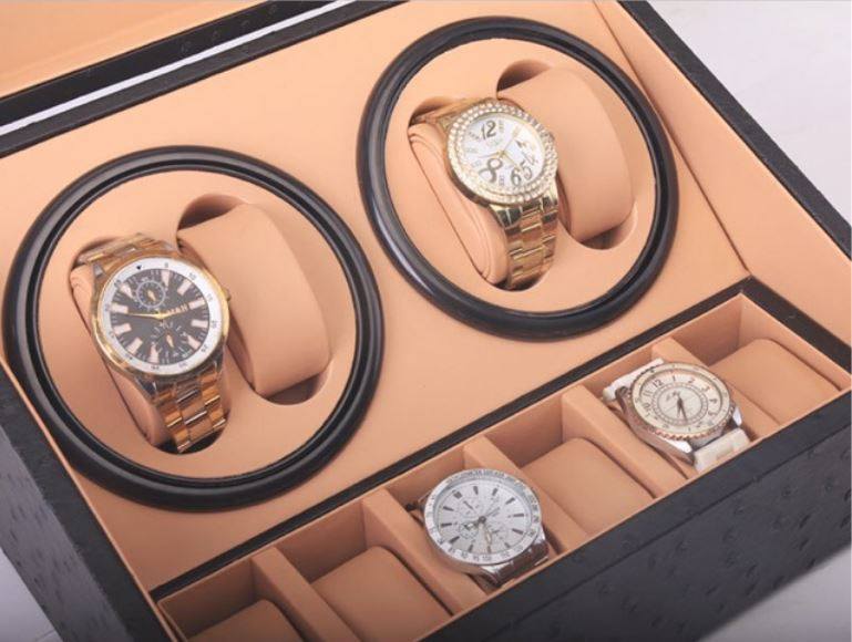 Hộp Đựng Đồng Hồ Cơ 4 Xoay 6 Trưng Bày Da Đà Điểu có chế độ quay cài sẵn :