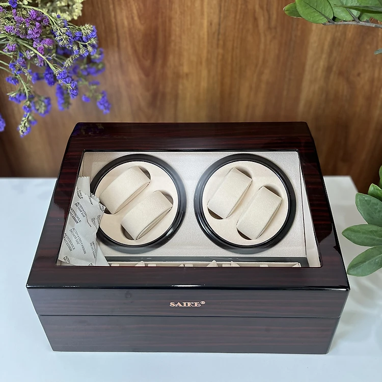[BH 2 Năm Động Cơ] Hộp Đựng Đồng Hồ Cơ 4 Xoay Và 6 Trưng Bày Gỗ Sơn Bóng