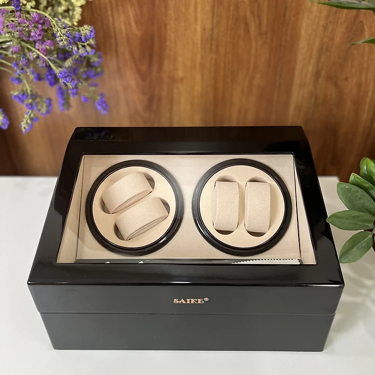 [BH 2 Năm Động Cơ] Hộp Đựng Đồng Hồ Cơ 4 Xoay Và 6 Trưng Bày Gỗ Sơn Bóng