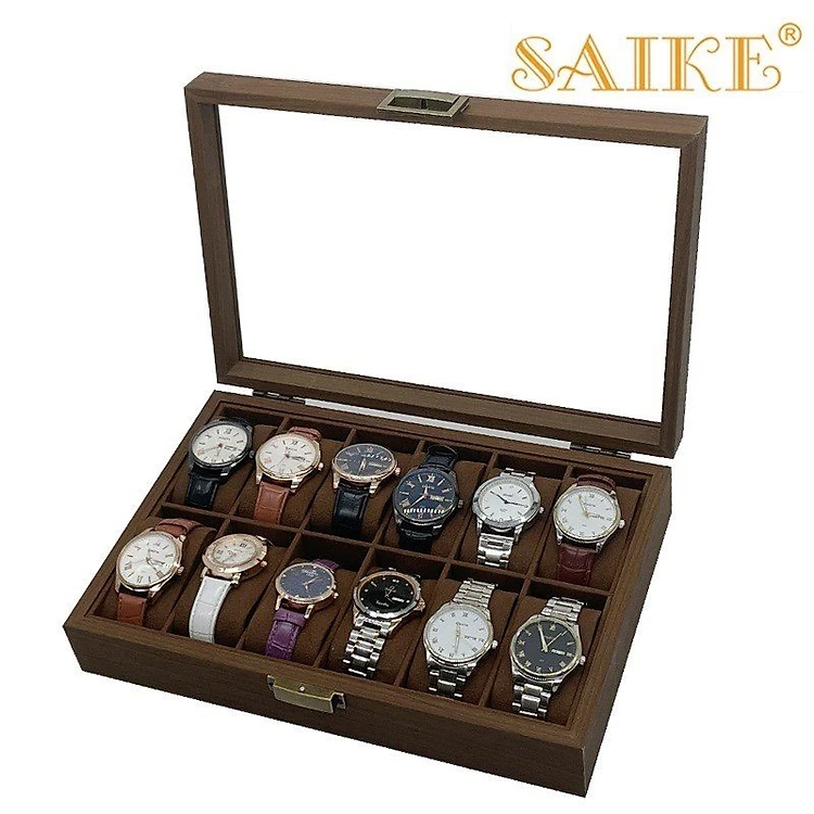 Hộp đựng đồng hồ - Hộp đựng 12 đồng hồ 2 hàng bằng gỗ màu nâu