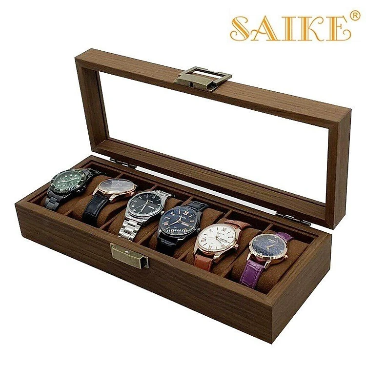Hộp đựng đồng hồ - Hộp đựng 6 đồng hồ bằng gỗ màu nâu