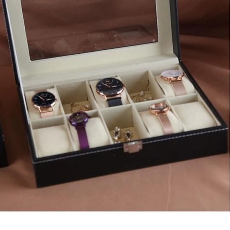 Hộp Đựng Đồng Hồ- Kính Mắt- Trang Sức VI-ARICK Vỏ DaPU Cao Cấp Trong Bọc Nỉ Sang Trọng - Mặt Trên Kính Trong Suốt