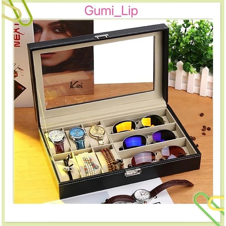 Hộp thiết kế sang trọng, cao cấp, chắc chắn với 6 ngăn đựng đồng hồ và 3 ngăn đựng kính mắt