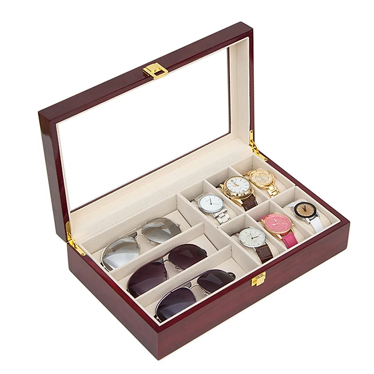 Hộp Đựng Đồng Hồ Và Mắt Kinh SAIKE SAIKE S6363 Mẫu Đựng 6 Đồng Hồ Và 3 Mắt Kính Vỏ Gỗ Cao Cấp Lót Nhung