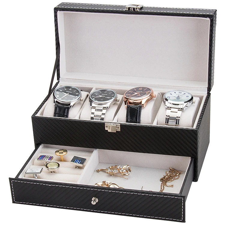 Hộp Đựng Đồng Hồ Và Trang Sức SAIKE SAIKE S444 Da Carbon