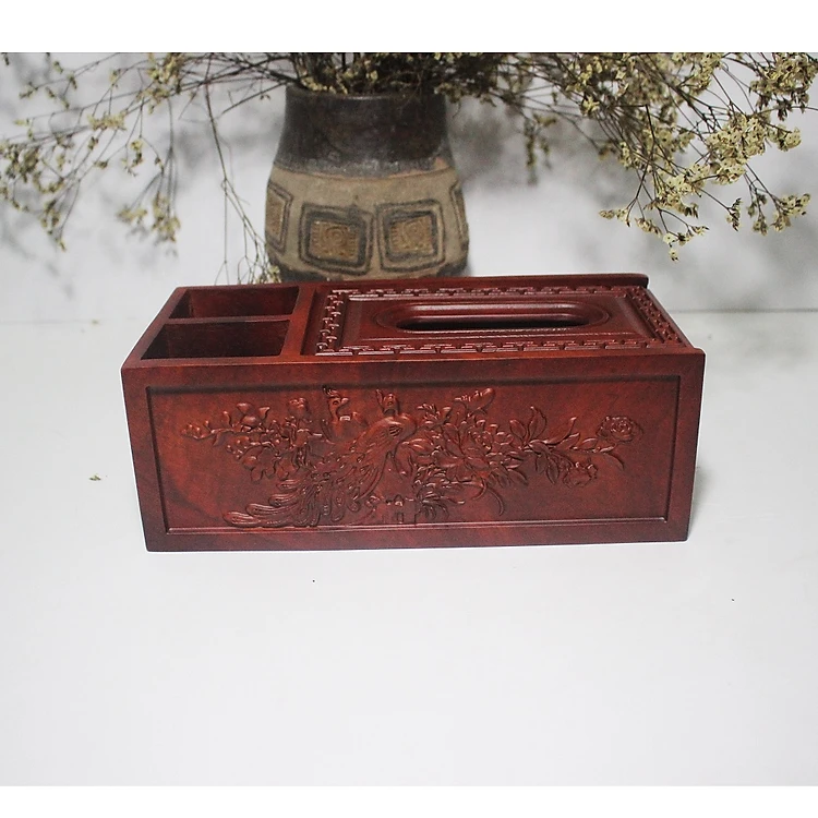 Hộp đựng giấy ăn 3 ngăn 2in1 chạm thành bằng gỗ hương cao cấp