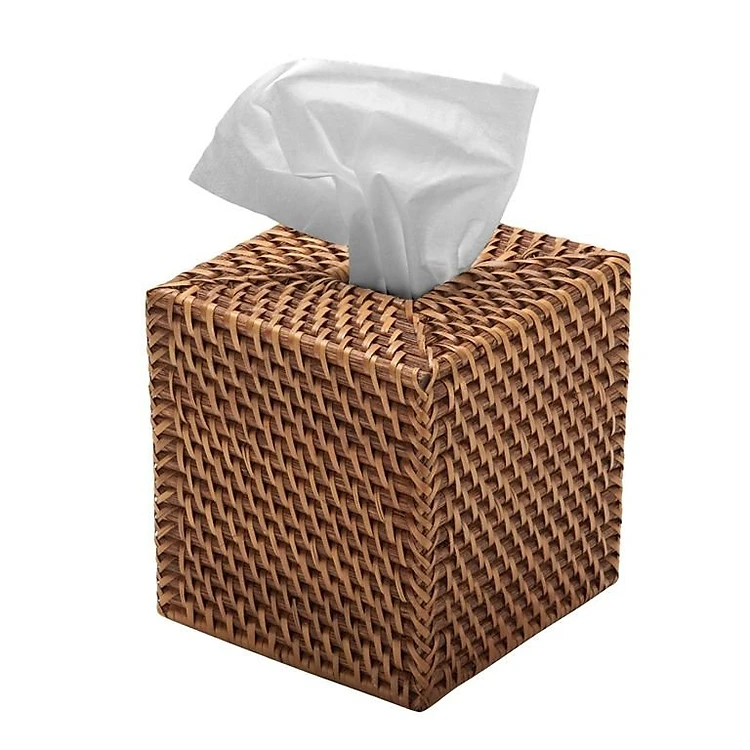 Hộp đựng giấy ăn bằng mây đan thủ công (14 x 14 x 14.6 cm)