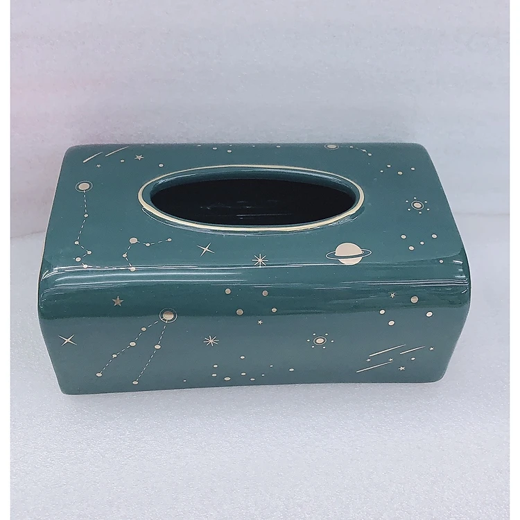 HỘP ĐỰNG GIẤY ĂN BẰNG SỨ MÀU XANH NGỌC LỤC BẢO HỌA TIẾT SAO - VD17