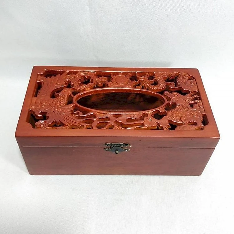 Hộp đựng giấy ăn Long Phụng gỗ hương FLOWER