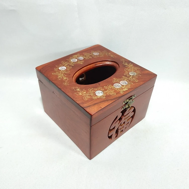Hộp đựng giấy ăn vuông khảm hoa văn MS010