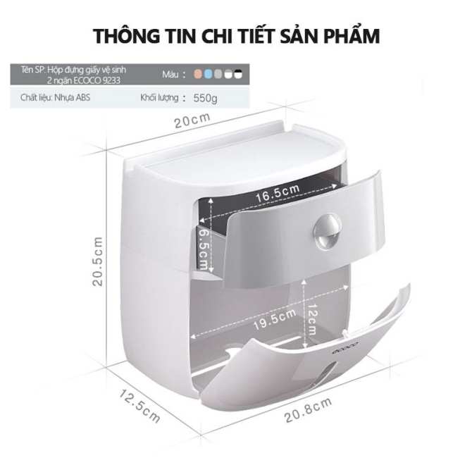 Hộp đựng giấy vệ sinh cao cấp 2 tầng Nhật Pháp được làm từ nhựa ABS bền đẹp, thời gian sử dụng lâu dài. Nắp đậy có thể đóng mở 1 tay.