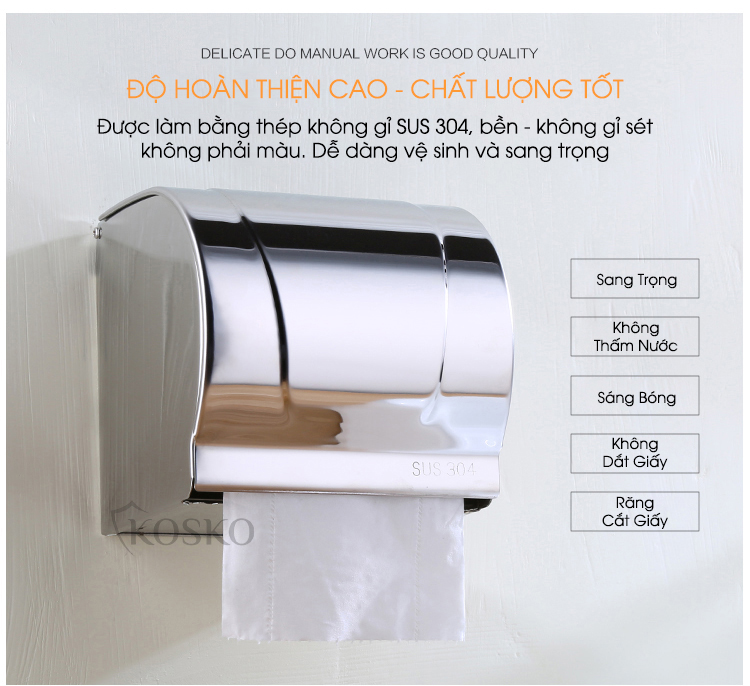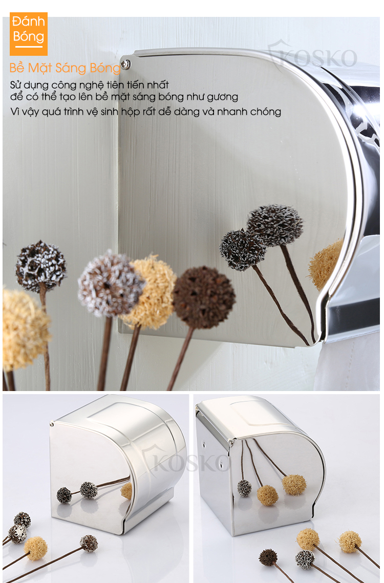 Hộp đựng giấy vệ sinh KOSKO chất liệu inox 304, hộp đựng giấy vệ sinh đa năng làm kệ nhà tắm, hộp đựng giấy inox 304, giấy vệ sinh treo tường