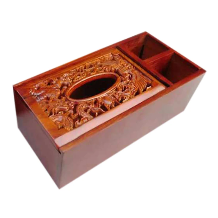- Chiếc hộp được làm chắc chắn, linh hoạt nắp kéo tiện lợi phía trên ngăn chứa khan giấy,còn có them hai ngăn để chứa các vật dụng hay sử dụng như điều khiển TV(remote), máy lạnh, bút viết …ất liệu gỗ hương ta đỏ tự nhiên quý hiếm,được trạm lọng hoa văn vô cùng cầu kỳ tinh xảo từ đôi bàn tay khéo léo của các nghệ nhân làng nghề Việt.
