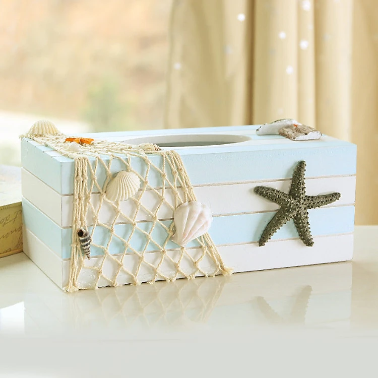 Hộp đựng khăn giấy, giấy ăn theo phong cách Địa Trung Hải với các trang trí hình Hải Âu, Thuyền buồm, Sao biển, Hải đăng, Mỏ neo lớ