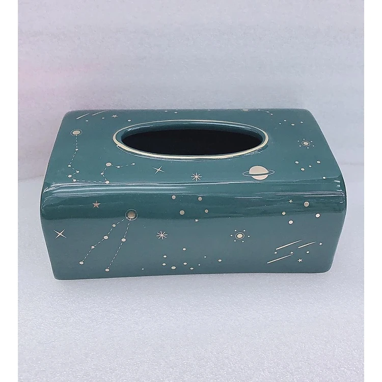 HỘP ĐỰNG KHĂN GIẤY BẰNG SỨ MÀU XANH CỔ VỊT HỌA TIẾT TRĂNG SAO