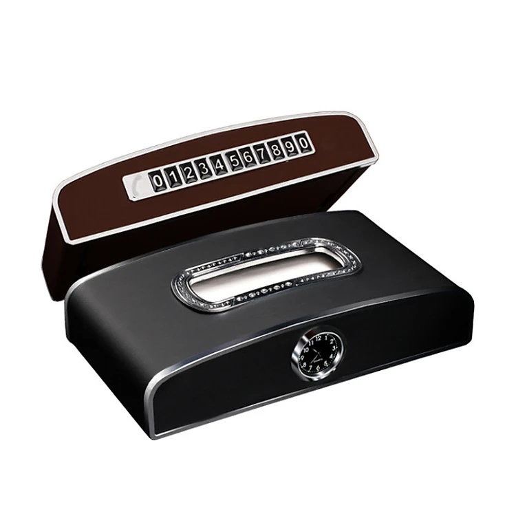 Hộp đựng khăn giấy kiêm bảng số điện thoại và đồng hồ cao cấp đặt taplo ô tô, xe hơi TB-6137