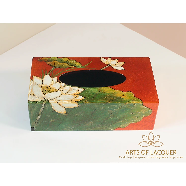 Hộp Đựng Khăn Giấy Sơn Mài Hoa Sen