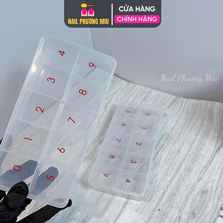 Hộp Đựng Móng 10 Ô Ngăn Số 0-9 Bằng Nhựa Cao Cấp, Màu Trắng Trong Làm Nail Tiện Dụng Cho Thợ Làm Nail, Chứa Đến 500 Móng, Charm, Đá, Chống Bụi