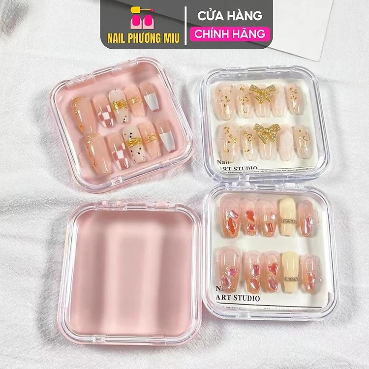 Hộp Đựng Nail Box Trưng Bày Móng Giả Bằng Nhựa Chuyên Dụng Màu Hồng Trong, Hình Vuông Bo Cạnh, Mới Sang Trọng Đáng Yêu - Nail Phương Miu Chống Bụi