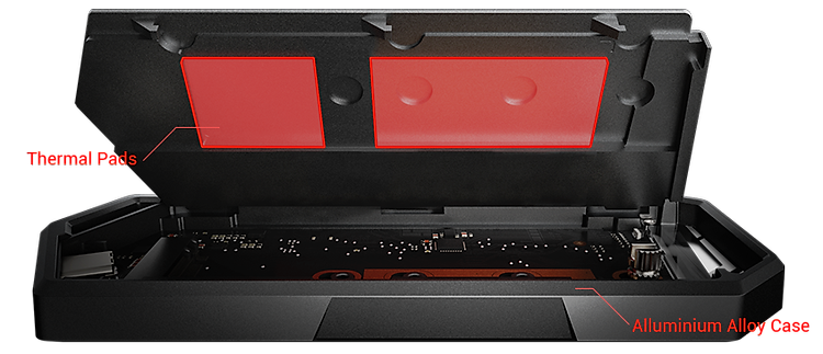 Vỏ hợp kim nhôm với các miếng tản nhiệt đi kèm giúp giảm nhiệt độ hoạt động đáng kể, cho phép SSD của bạn duy trì tốc độ truyền cao và kéo dài tuổi thọ của nó.