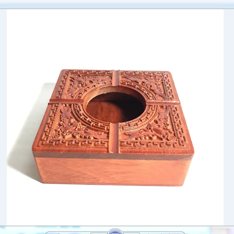Hộp đựng tàn thuốc lá bằng gỗ hương chạm mặt siêu đẹp - ảnh thật