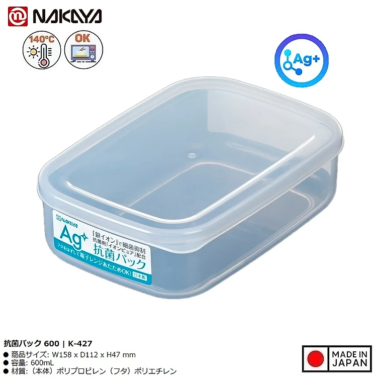 Hộp đựng thực phẩm kháng khuẩn Ag+ 600ml - Hàng nội địa Nhật Bản nhập khẩu chính hãng