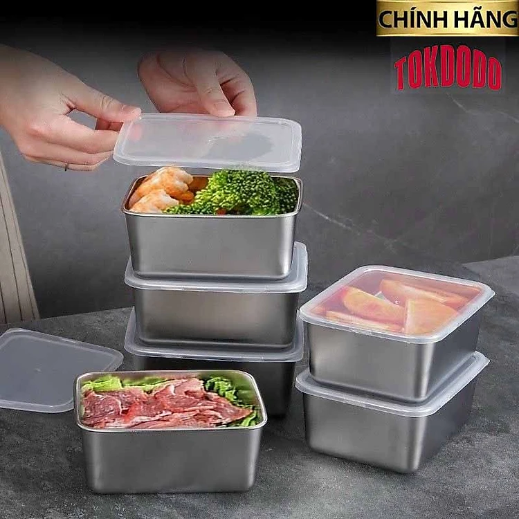 Hộp Đựng Thực Phẩm Tủ Lạnh, Đồ Ăn Bằng Inox Có Nắp Nhựa Kèm Theo Tiện Lợi (135x105x58 mm) Và Loại To ( 250x200x60 mm)