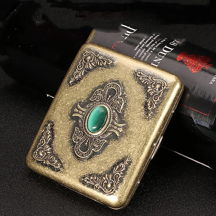 Hộp Đựng Thuốc 20Đ Lớn Ngắn Đính Ngọc Lục Thạch Cổ Điển