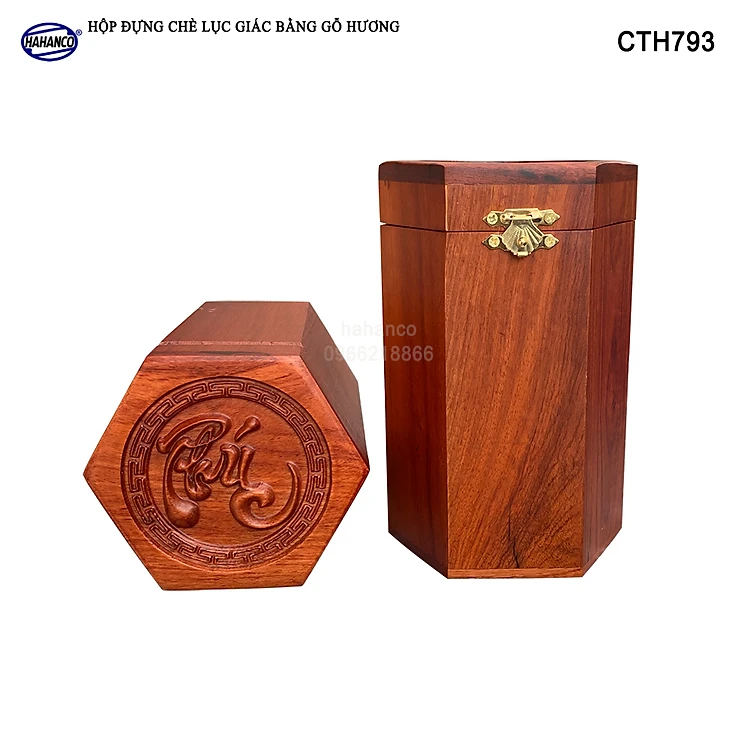 Hộp đựng trà bằng gỗ Hương mặt đục chữ Phúc - hình lục lăng, cafe, decor, giúp giữu mùi vị, vân gỗ siêu đẹp - CTH793