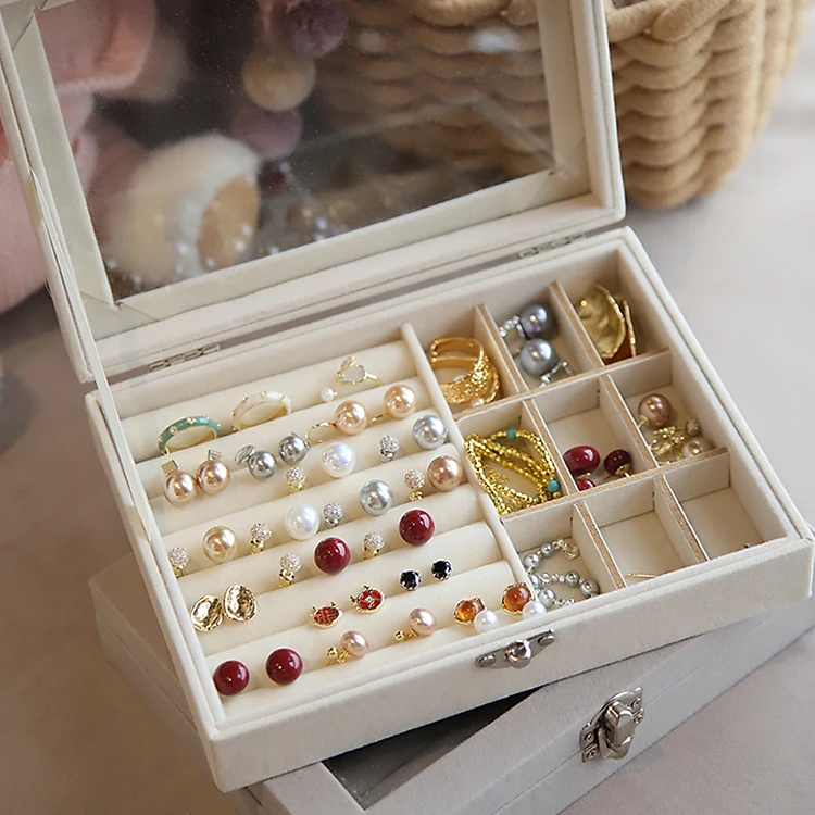 Hộp đựng trang sức loại to bằng vải nhung sang trọng , có khóa hiện đại , bảo vệ trang sức , chống bụi , chống oxy hóa tiện dụng
