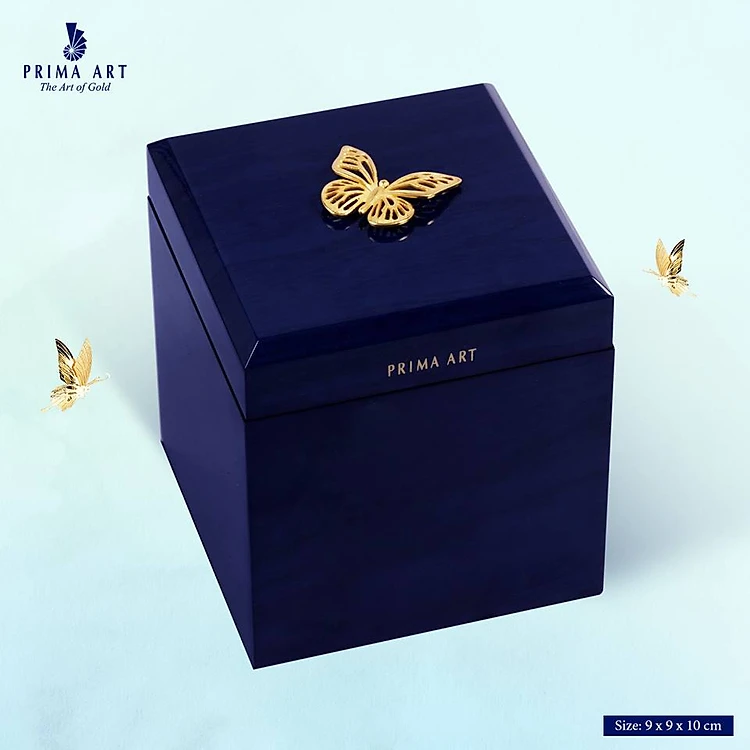 PRIMA Hộp Trang Sức Sơn mài & Hoa Hồng mạ Vàng 24K - Màu xanh dương - 422D3176-01
