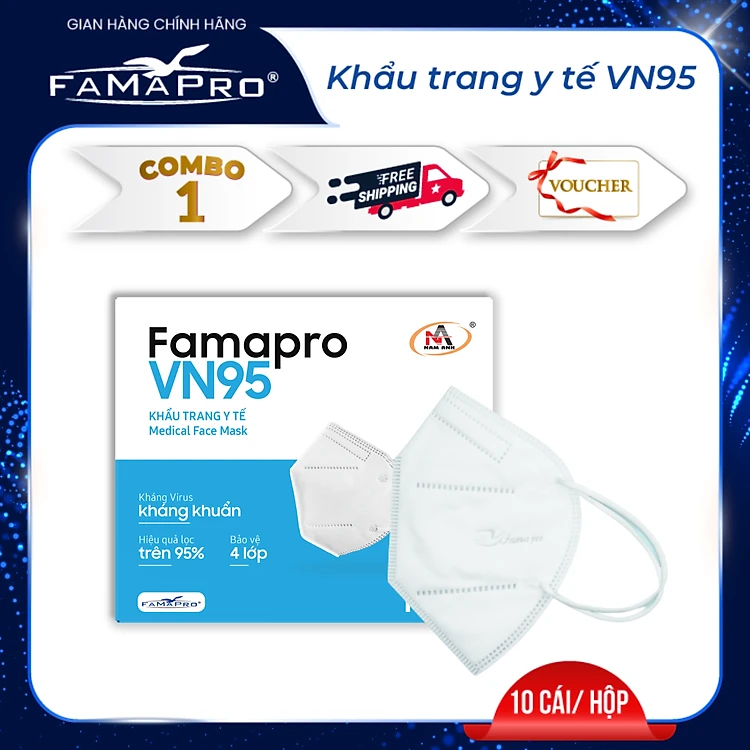 - Tiêu chuẩn khẩu trang: BFE, VFE, PFE ≥ 95%. Chứng nhận CE, FDA