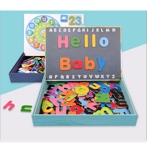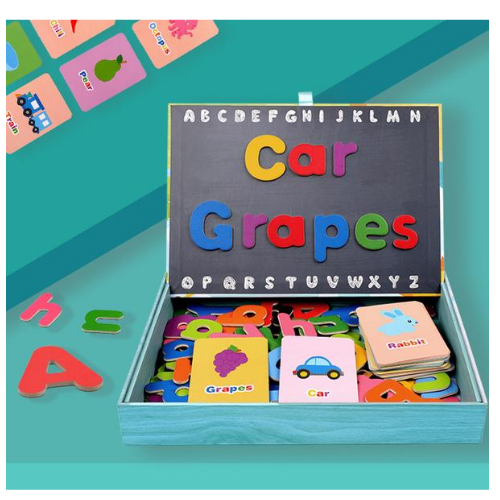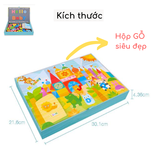 Chất liệu: Gỗ cao cấp phủ lớp sơn bền đẹp, khó phai màu, an toàn tuyệt đối cho sức khỏe trẻ nhỏ.Các miếng ghép chữ được đính bằng nam châm có độ chắc chắn cao.