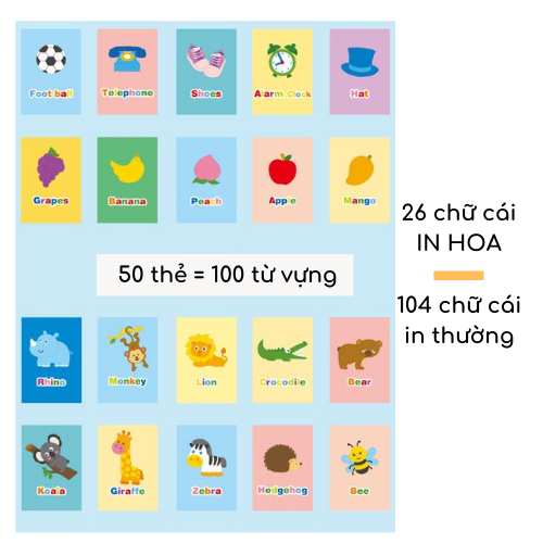 Hộp Bảng Chữ Cái kèm 100 từ vựng Tiếng Anh cho bé.