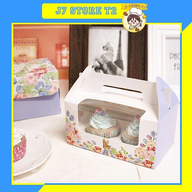 Hộp giấy Kraft mặt kính Mica trong đựng bánh Cupcake hình thỏ Peter (kèm đế) J7ST2000027