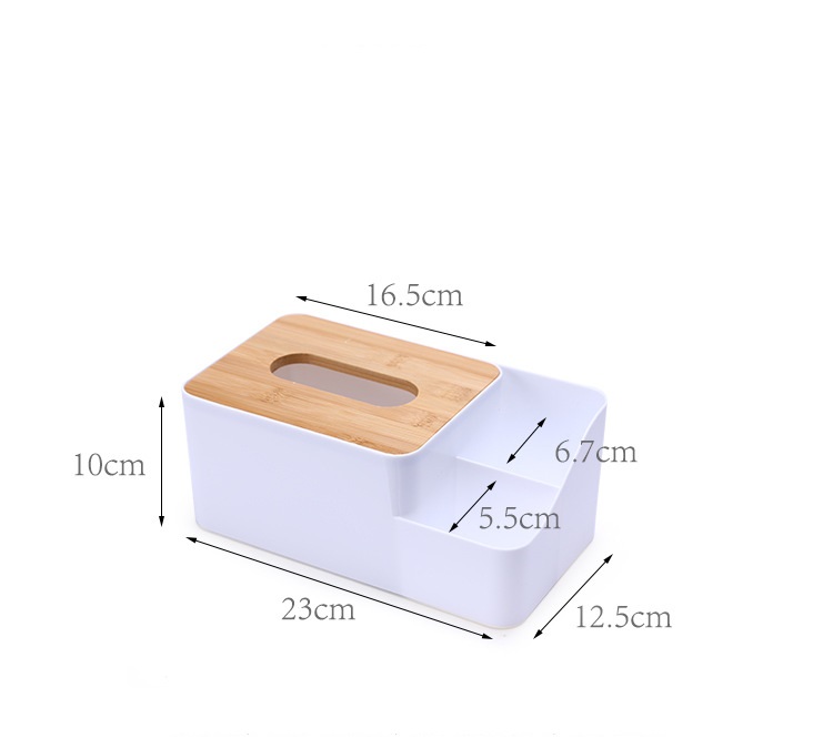 Kích thước: 12.5x23x10 cm, phần hộp đựng giấy 16.5x12.5 cm