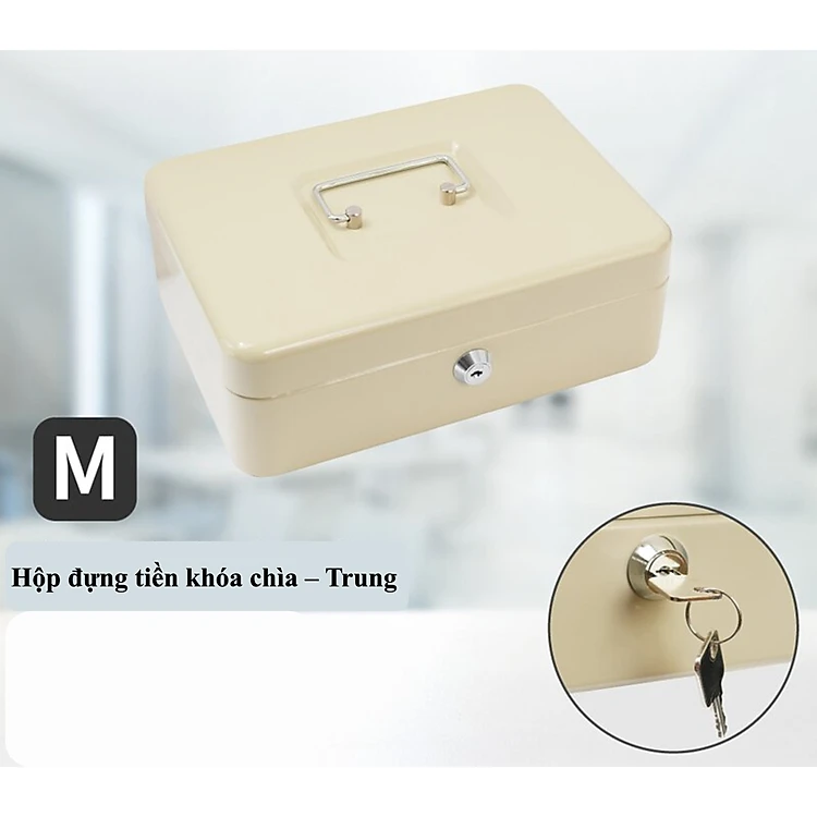 Hộp đựng tiền tiết kiệm chính hãng TRENY - Mẫu chìa khoá màu Beige ( size M ) 2 tầng chia nhiều ngăn nhỏ đựng tiền tiết kiệm và trang sức giá trị