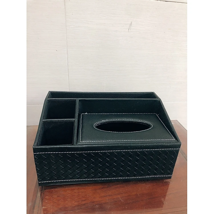 Hộp khăn giấy da màu đen cao cấp, sang trọng 24x10x15cm - Hàng chính hãng